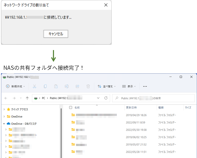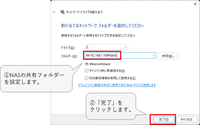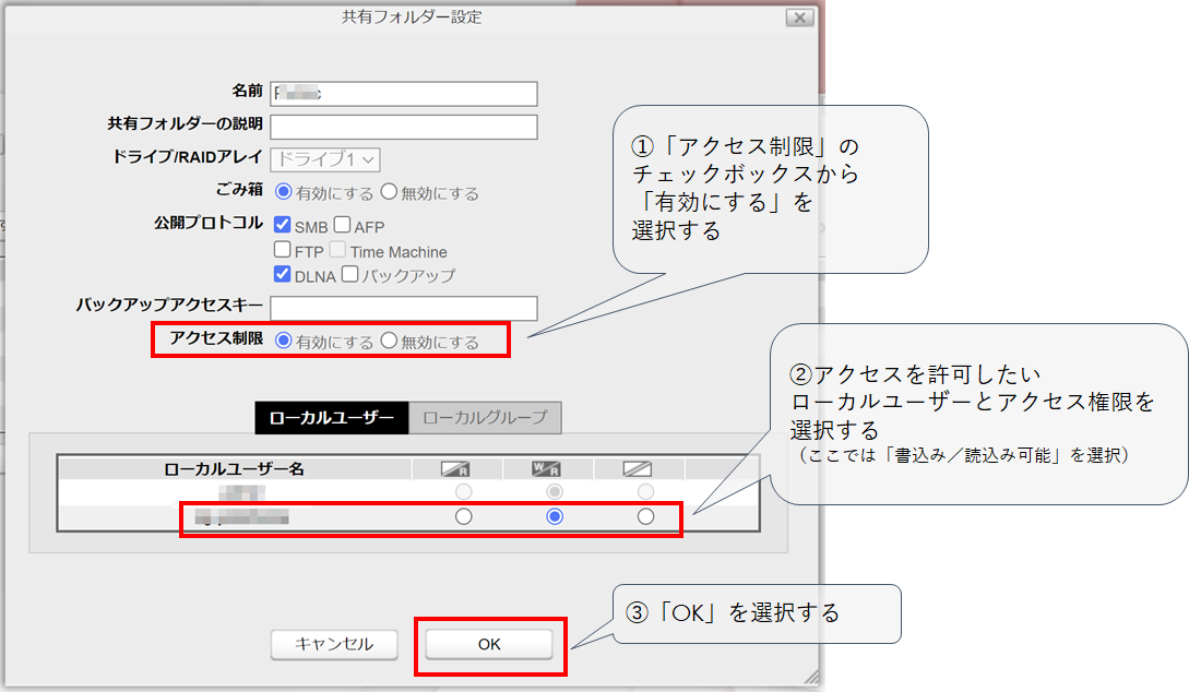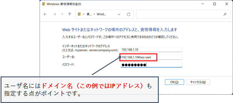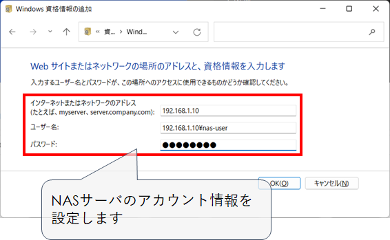 (*1)Windowsのローカルアカウントと同じアカウントをNASにも設定している前提です。